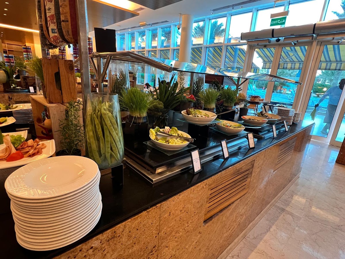 I recently enjoyed the buffet lunch at Mawasem, Hilton Doha, and it was a very satisfying experience overall. The buffet offered a wide variety of dishes, covering both vegetarian and non-vegetarian options. There were dedicated sections for vegetables, lentils, seafood, beef, lamb, and chicken, along with a live pasta station, which added a nice interactive touch. Personally, I really loved the chicken and mango salad and the baked salmon salad—both were fresh and well balanced in flavor. The fish with tomato sauce was also quite good. In fact, I enjoyed most of the items on the buffet, as everything was well prepared and nicely presented. The dessert section was impressive, with a full range of options that were rich in flavor and very appetizing. However, the only letdown for me was the Umm Ali, which felt a bit bland compared to the rest. Despite that, the dessert selection overall was excellent. The service was quick, attentive, and efficient, adding to the comfort of the dining experience. The ambiance was amazing and beautifully done, with both indoor and outdoor seating options, including views of the pool and the sea, which made the lunch even more enjoyable. A special mention to Mermae, the host, who warmly welcomed us and took great care throughout our visit. She also took our feedback regarding the soft drinks package (the buffet includes water and juices but not cola) and thoughtfully recommended their seafood buffet, which we are definitely considering for our next visit. Overall, I had an amazing time and a great meal. For the price and variety of food, I would rate the buffet 8/10, and I would happily recommend it for a relaxed and enjoyable buffet lunch experience.